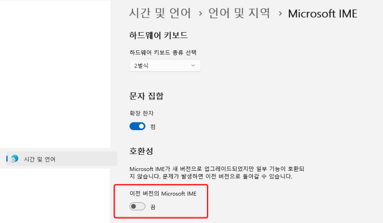 호환성 부분에서 이전 버전이 MicroSoft IME이가
