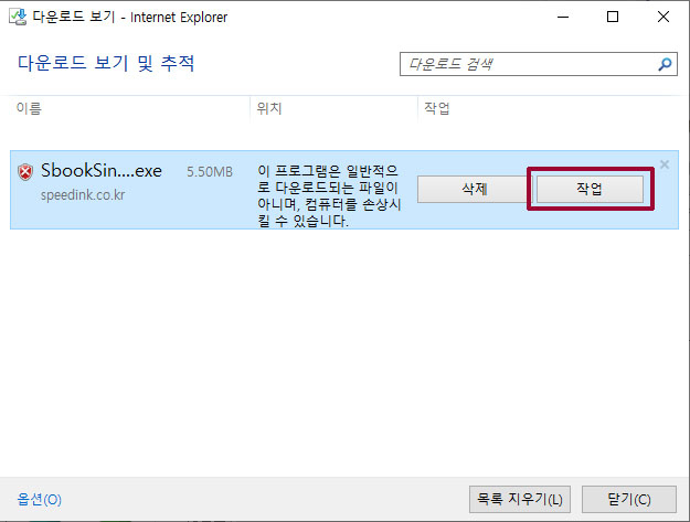 스피드장부(www.speedink.co.kr) 홈페이지에서 스피드장부 프로그램을 설치하려고 하면